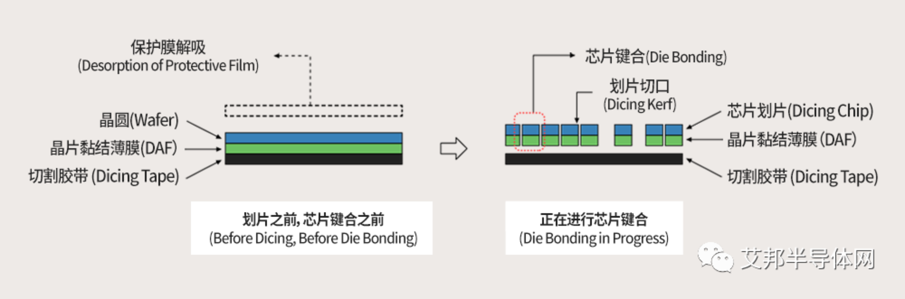 图5. 使用晶片黏结薄膜(DAF)的芯片键合工艺