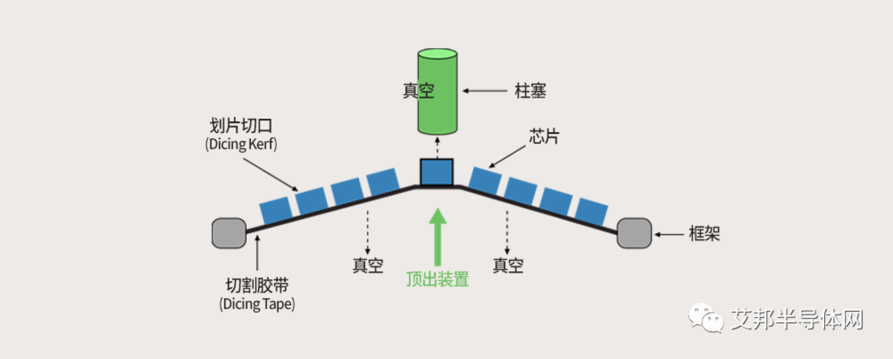 3*顶出装置(Ejector):用于从切割胶带下方顶起芯片的顶针。